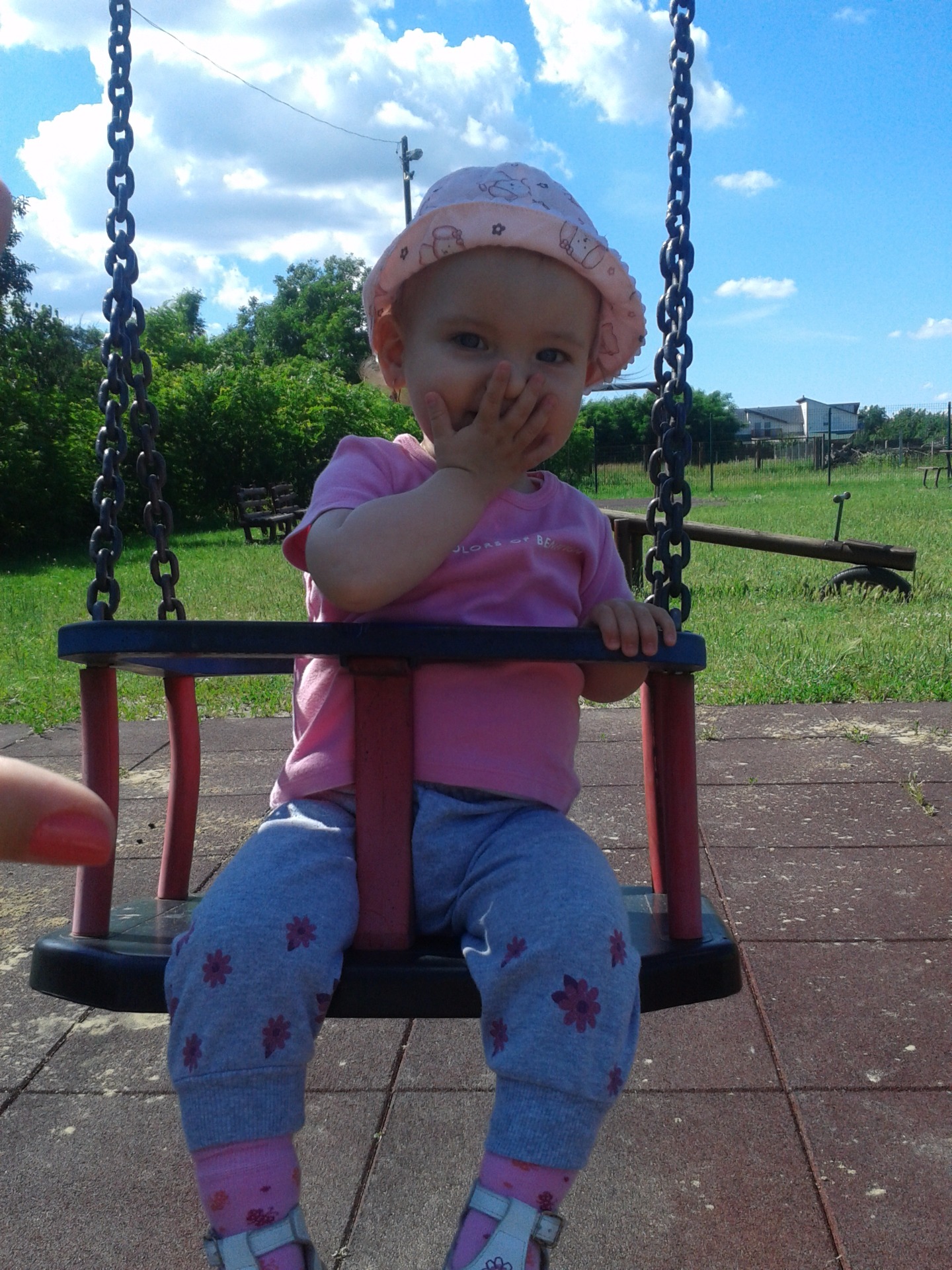 Bárhol, csak babahinta legyen, Bettina hintázik. Én ugyan nem erőltetem, Apu végképp nem, mert hogy húzza az időt, mikor annyi teendőnk lenne... :D De hát látható, a gyerek hozzájut!