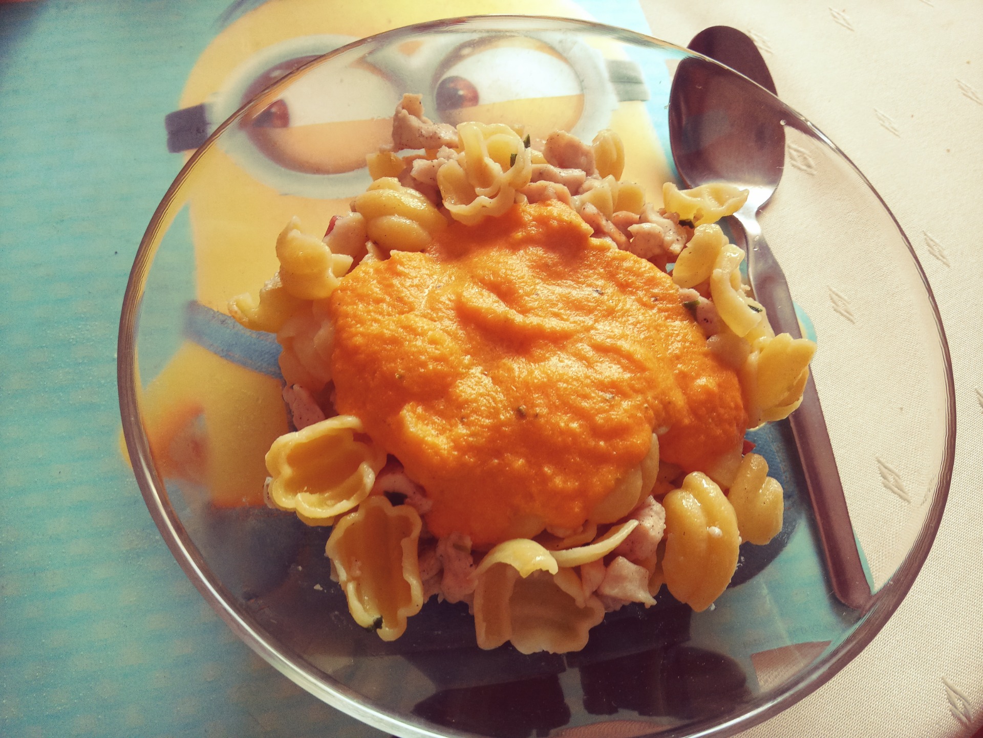 Én a tésztát a husival összemelegítettem, majd így szedtük tányérba, s rá a szószt. Gyerekbarát! Tanuljatok fütyülni! Jó étvágyat! :)
