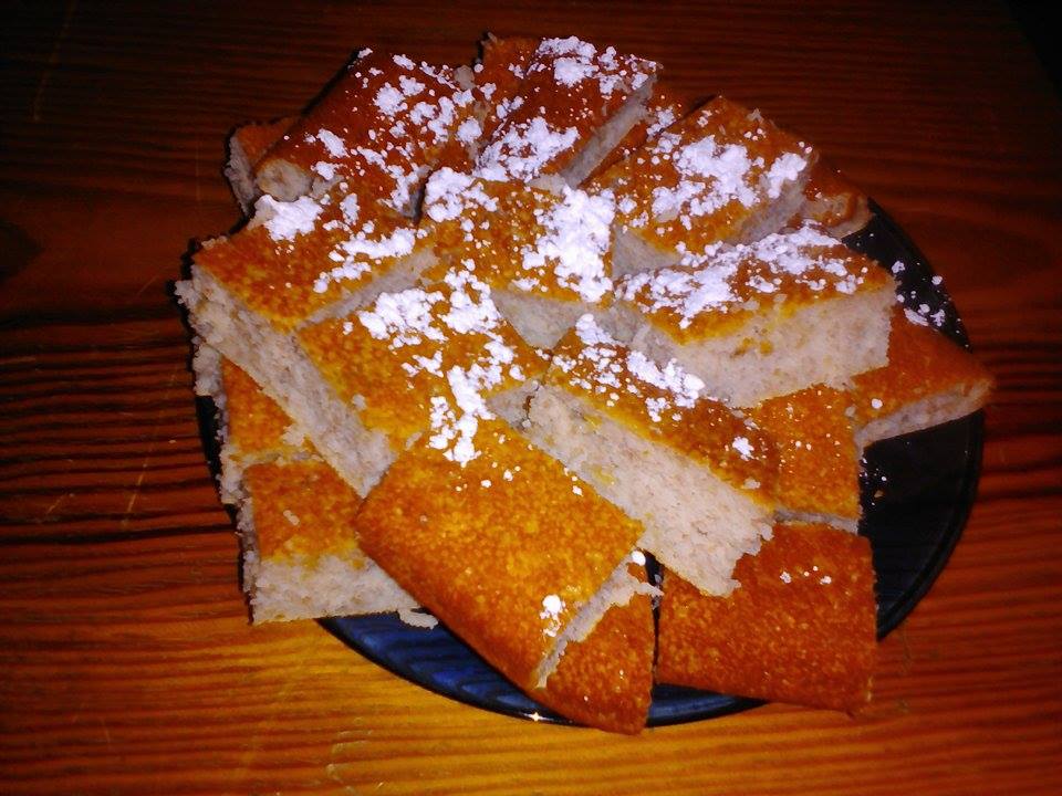 Megvárom, míg kihűlt egy kicsit és fejjel lefelé, egészben kiborítottam a tepsiből, felszeleteltem - ízlés szerint - megporcukroztam és voilá!