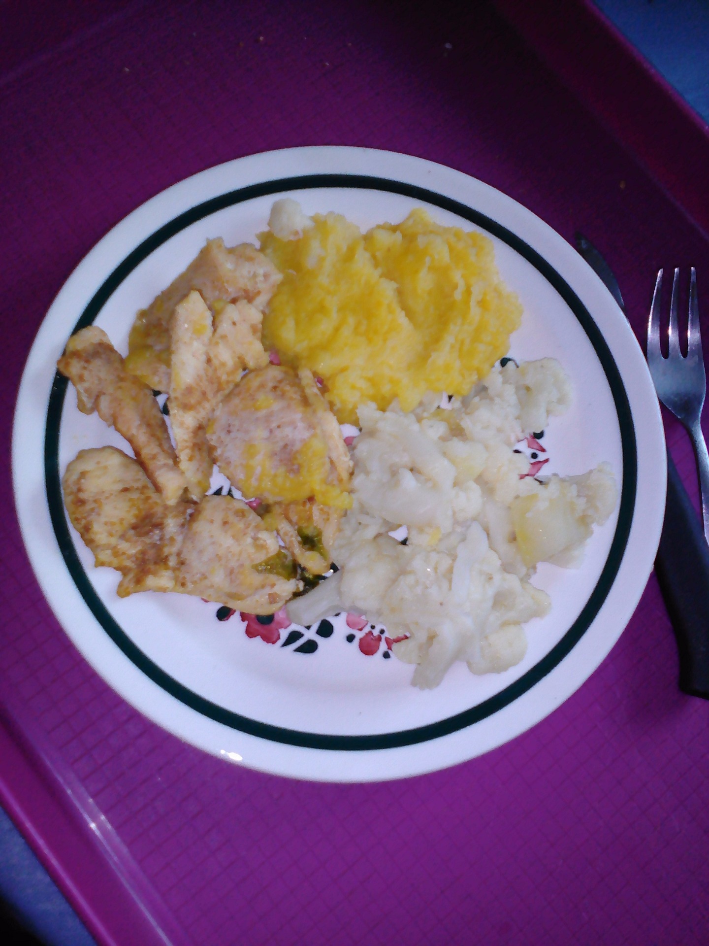 Mostanában csak kis karfiolfejeket lehet látni a zöldségesnél, gyerek miatt beruháztam egybe, amit épp nem eszik meg, mehet a fagyóba porciózva. Felraktam vízben főni, érezni, mikor már kész! Bejárja a lakást a karfiol "fincsi" illata. Egy kanálnyit vajon megfuttattam, megsóztam.